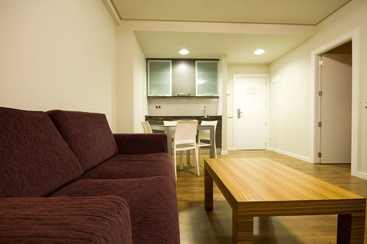 Apartamento exterior de 44 m² (aprox.) estilo dúplex o en una sola planta. Dispone de habitación independiente con 2 camas de 1x1,90 m o cama doble de 1,50x1,90 m bajo disponibilidad, Salón comedor con pequeña cocina equipada y sofá cama de 1,40x1,90 m. Algunos tienen una terraza. 44 m² | 4 personas. Dispone de WIFI gratuito y puedes venir acompañado de tus mascotas, hasta 15 Kg más información en el apartado de servicios).